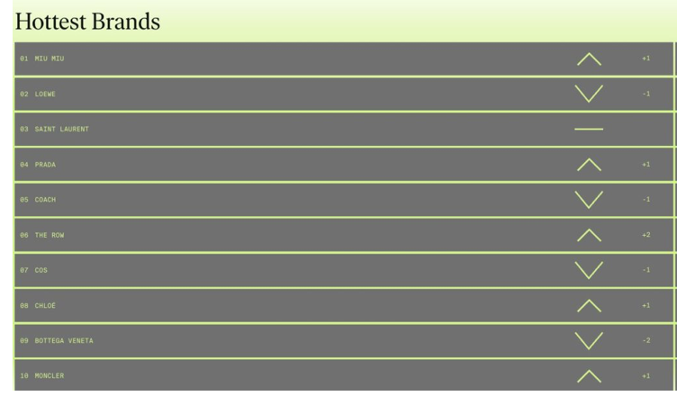Secondo la classifica Lyst, pubblicata ogni tre mesi per identificare quali brand e prodotti sono i più desiderati del momento, MIU MIU torna ad essere il marchio più amato nel secondo trimestre 2025.