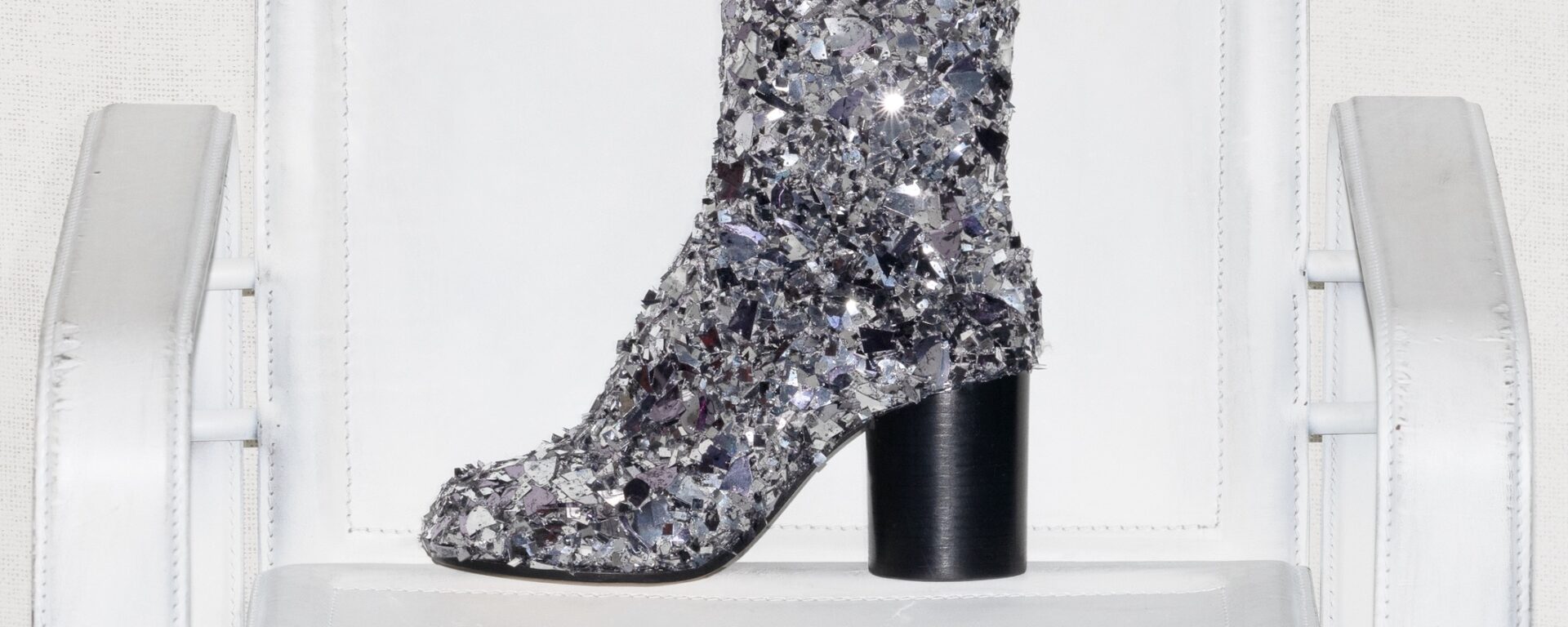 L’edizione inaugurale, “Broken Mirror Embroidery”, è limitata a soli 25 paia nel mondo. Ogni scarpa è ricamata a mano con oltre 8.000 perline di vetro, paillettes e frammenti metallici tagliati al laser, un lavoro che coinvolge 11 artigiani specializzati e richiama la tecnica “Broken Mirror” vista nella collezione Artisanal FW15.