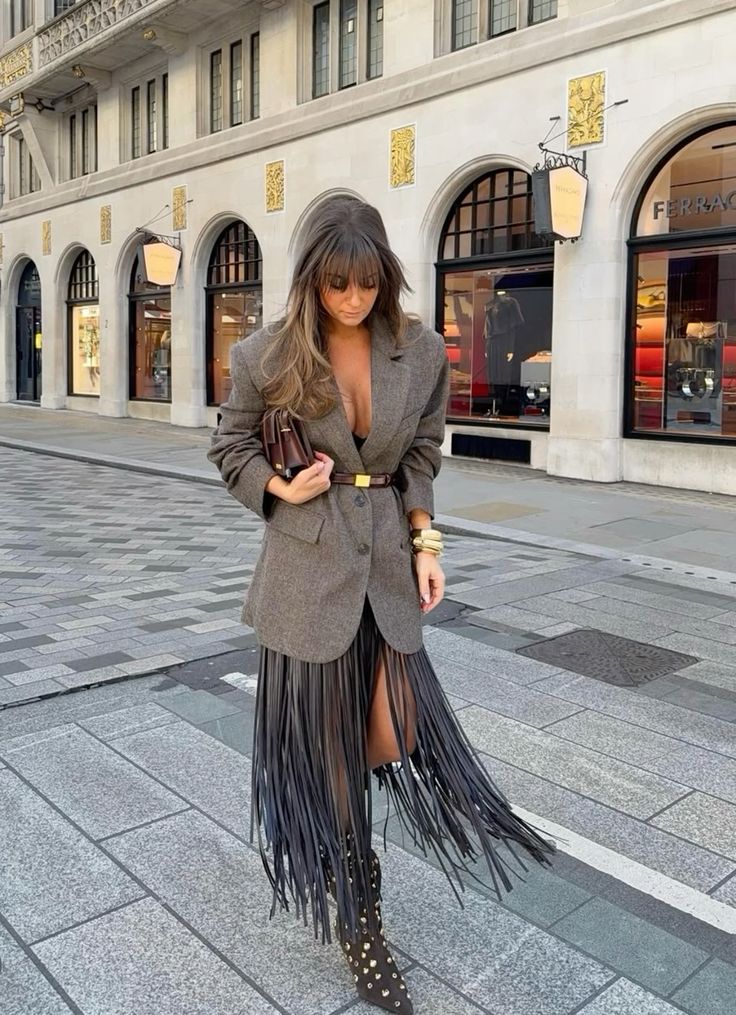 La gonna a matita, simbolo eterno di rigore e grazia, ritorna a occupare il centro della scena. Riletta in chiave moderna, si veste di materiali nuovi pelle, lana compatta, denim scuro e parla di una femminilità che non teme la struttura. È un capo che si porta con la stessa disinvoltura in ufficio o in un contesto informale: con un dolcevita minimal e stivali alti per il giorno, o con una camicia fluida e tacchi sottili per la sera.