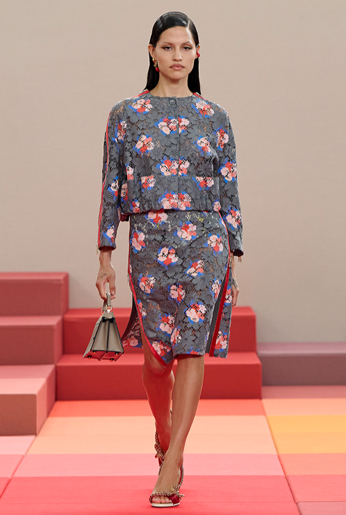 Silvia Venturini Fendi ha dichiarato che il fil rouge della stagione è “un senso di leggerezza e colore che incontra un’eleganza romantica.“