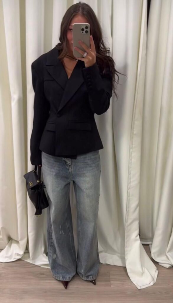 Non possono mancare i jeans! È essenziale trovare il modello perfetto che ti calzi a pennello. Cerca jeans di qualità, né troppo stretti né troppo larghi, che ti offrano comfort durante tutto il giorno. Le caratteristiche chiave di un jeans ideale sono il lavaggio (scegli un basic), le tasche e una vita media che calzi perfettamente. Un jeans che cade leggermente morbido sulla gamba e arriva sotto il malleolo è perfetto. Puoi indossarli con una T-shirt e un blazer per un look casual o con una camicia elegante per un approccio più professionale. Sono perfetti per il venerdì casual in ufficio o per un incontro informale dopo il lavoro.