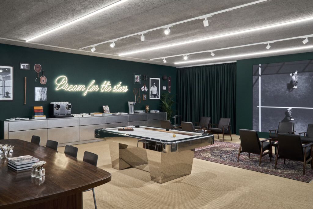 All’interno, un wellness café offre proposte bilanciate per ricaricare corpo e mente tra un match e l’altro, mentre la lounge area invita al relax o al lavoro nel coworking.