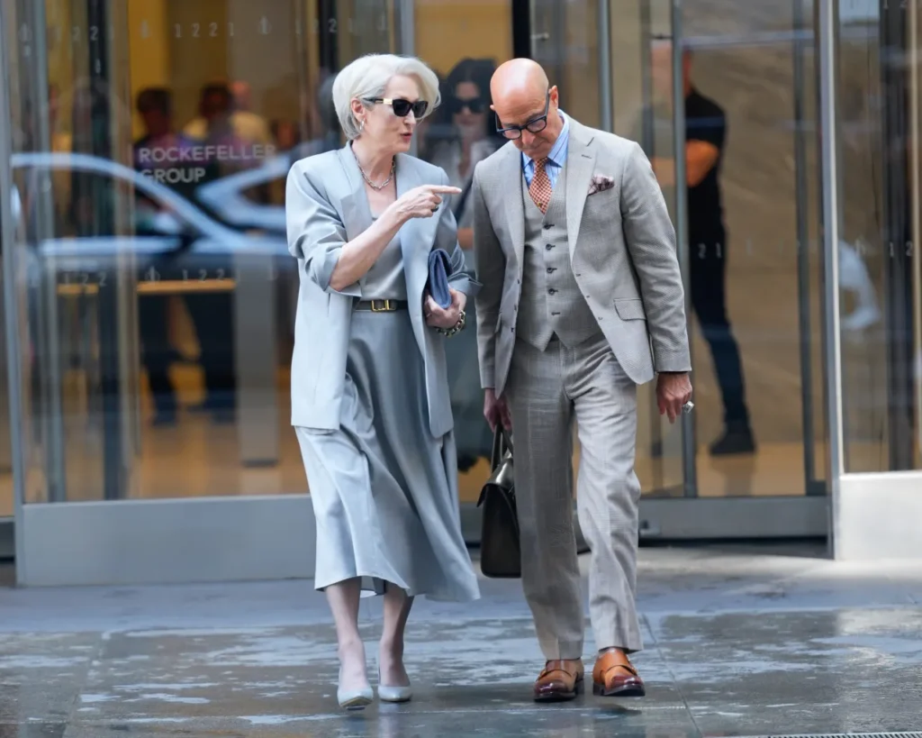 Il Diavolo veste Prada 2 nasce da entrambe. Da un lato, richiama il fascino intramontabile di Miranda Priestly e del suo “That’s all”; dall’altro, si muove in un panorama in cui il potere non è più verticale, ma diffuso, condiviso, digitale.