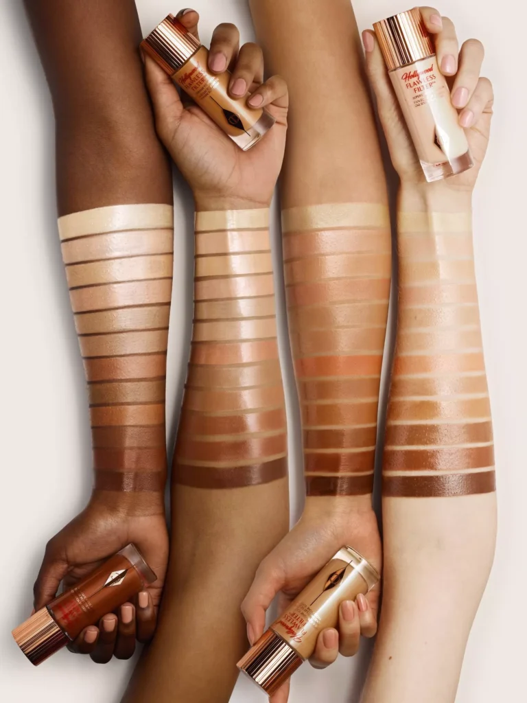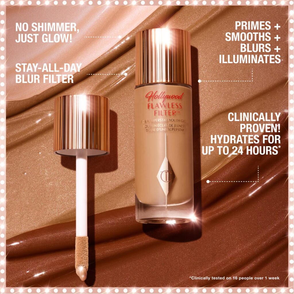 Tra i protagonisti di questa rivoluzione c’è l’Hollywood Flawless Filter di Charlotte Tilbury: un prodotto che combina primer, illuminante, base perfezionante e olio idratante. La sua texture leggera, arricchita da microperle riflettenti e polimeri leviganti, cattura la luce e la diffonde in modo uniforme. Il risultato è una pelle curata, radiosa e idratata fino a 24 ore.