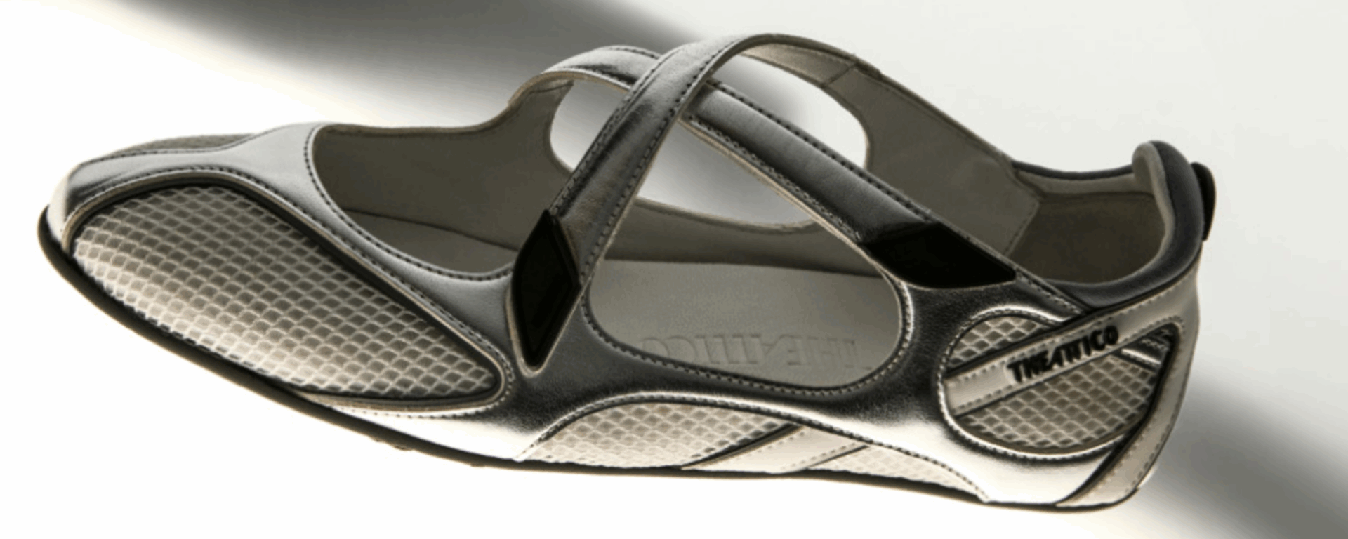 Il suo design richiama la tradizione delle ballerine, ma la reinterpreta con una sensualità nuova, architettonica e dinamica. Le linee sono essenziali, la punta leggermente squadrata, la calzata comoda ma decisa: è una dichiarazione di indipendenza in forma di scarpa.