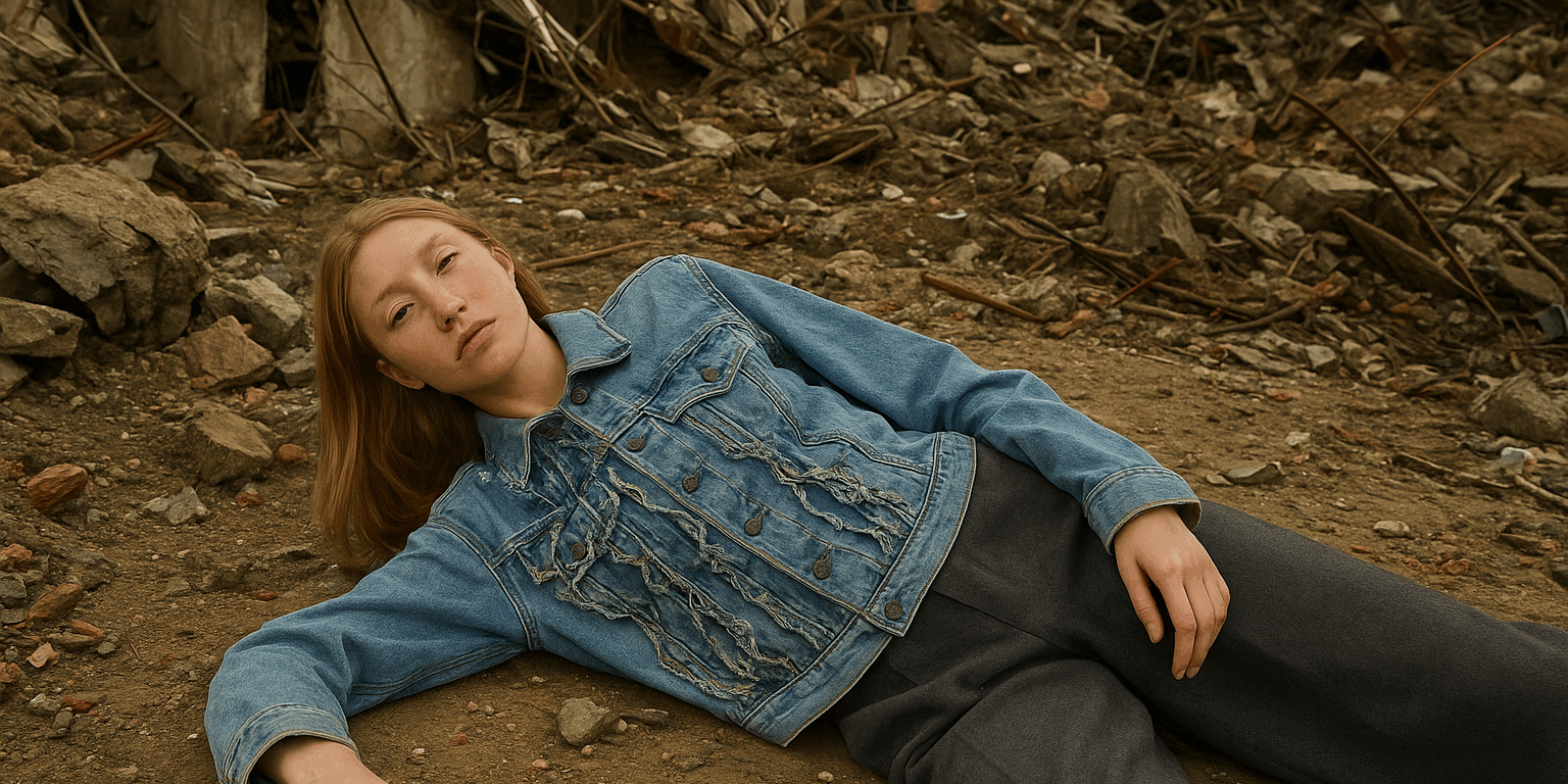 Il denim destrutturato avvolge il corpo come un’armatura leggera, ma è un’armatura che vibra, che respira, che racconta. C’è un’energia urbana, cruda, quasi rituale nel modo in cui si posa sulle spalle. E più la guardi, più ti rendi conto che non è lei a voler essere compresa: è lei che vuole comprendere te. Il suo linguaggio è quello delle cicatrici, delle rinascite, delle seconde possibilità. Non parla a chi cerca approvazione: parla a chi sceglie la propria strada, anche quando non è lineare.